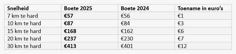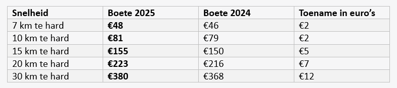 aanpassing is het resultaat van een indexering van 3,2% op basis van de consumentenindex, bedoeld om boetes in lijn te houden met inflatie. Naast de